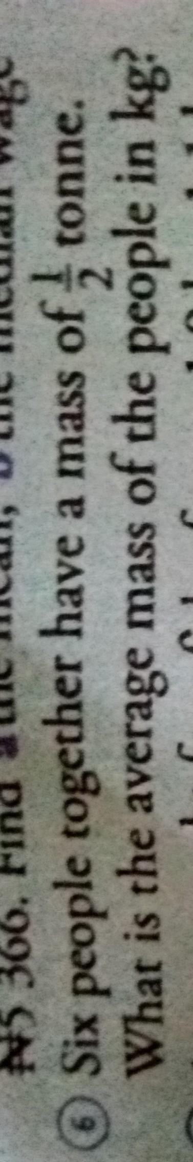The total mass of the six people is 1/2 tonne, which is equivalent to 500 kg (since 1 tonne = 1000 kg).