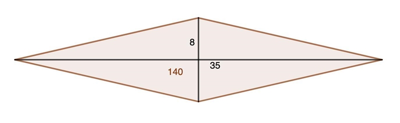 The area of this rhombus is 140 square millimeters. One of its diagonals is 35 millimeters-example-1