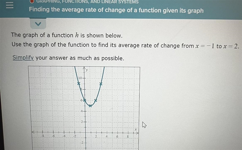 You want the average rate of change of the function shown in the graph between x=-1 and x=2.