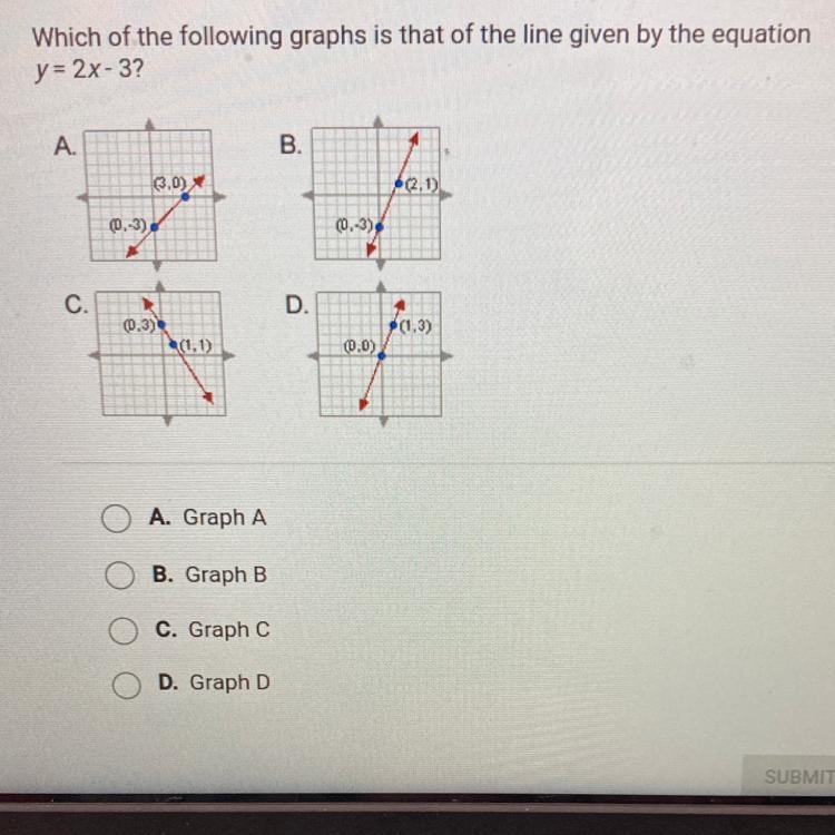 process of elimination, graph B looks to to have the x intercept on 2/3 and has a y int of -3