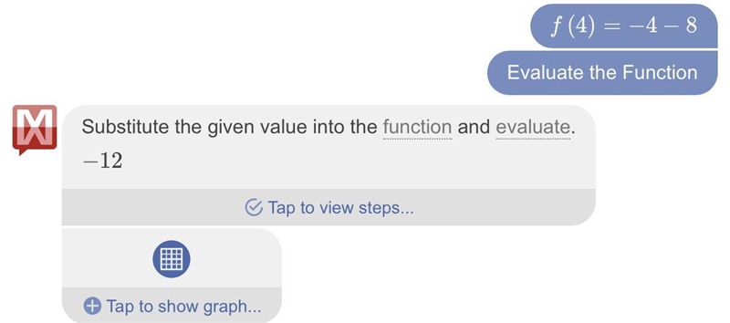 instead of it being just f(x)=-x-8 it will be f(4)= -4-8