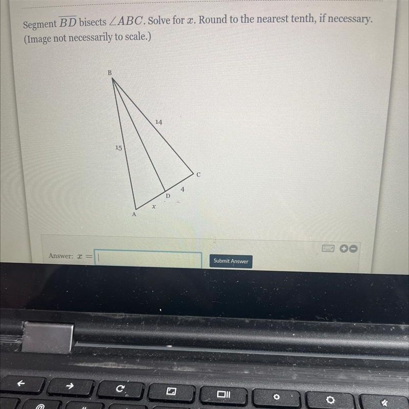 If a line is bisecting another line, then both parts are equal. So, x has to be equal to 4.