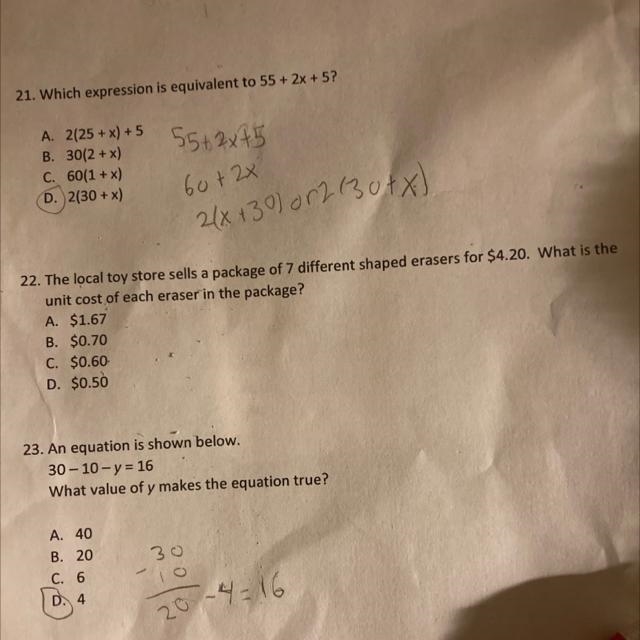 Number 22. The local toy store sells a package of 7 different shaped erasers for 4.20 $ what is the unit cost of each eraser in the package