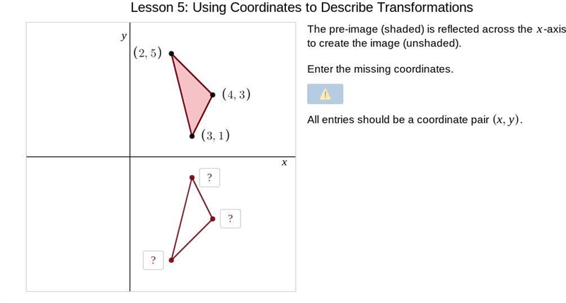 When reflected across the X-axis, the sign of the y will change to the opposite.