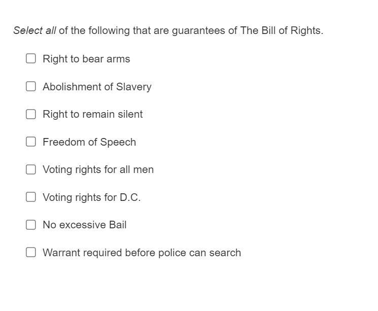 - Voting rights for all men and voting rights for D.C. are not guarantees of The Bill of Rights, but they are guaranteed by later amendments to the Constitution.