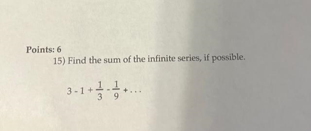 In this case, the first term is 3 and the common ratio is -1/3. So we can plug these values into the formula: