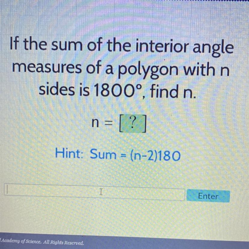 (n - 2) * 180 = 1800