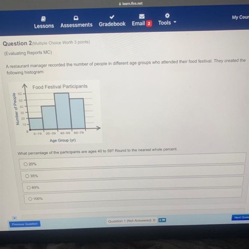 2. Divide the age group 40 - 59 by the total amount of participants to get the answer.