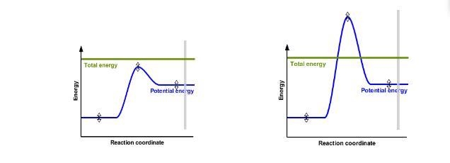 The graph shown on the left is an uncatalyzed chemical reaction while the graph on the right is a catalyzed chemical reaction.