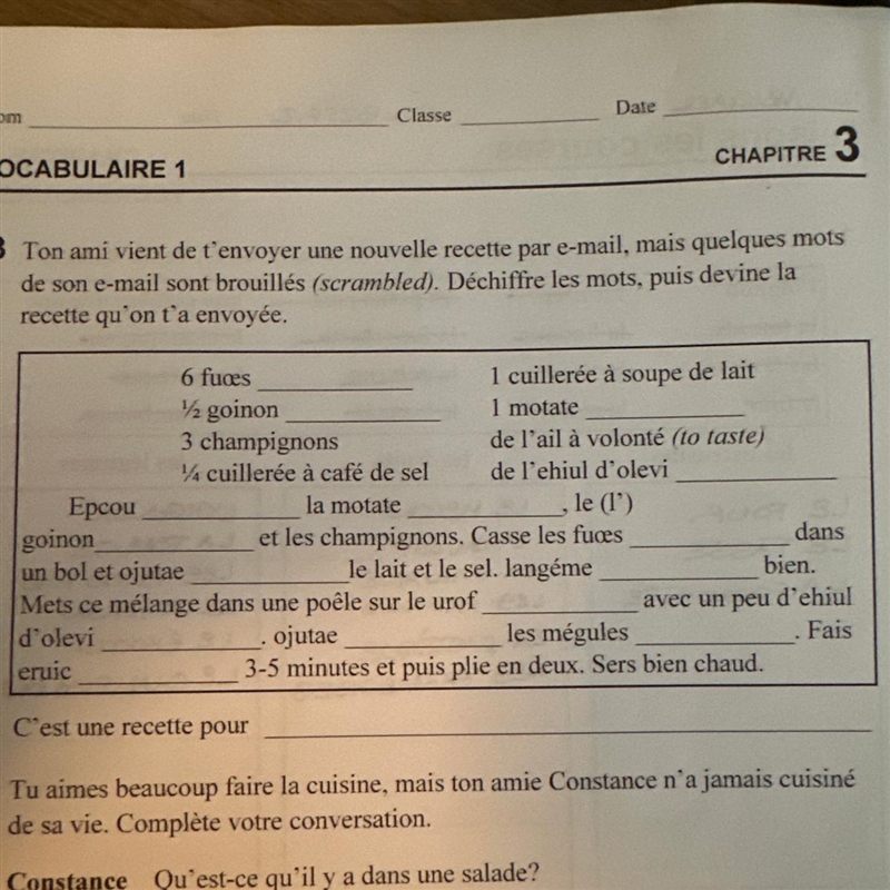3 Ton ami vient de t'envoyer une nouvelle recette par e-mail, mais quelques mots de-example-1