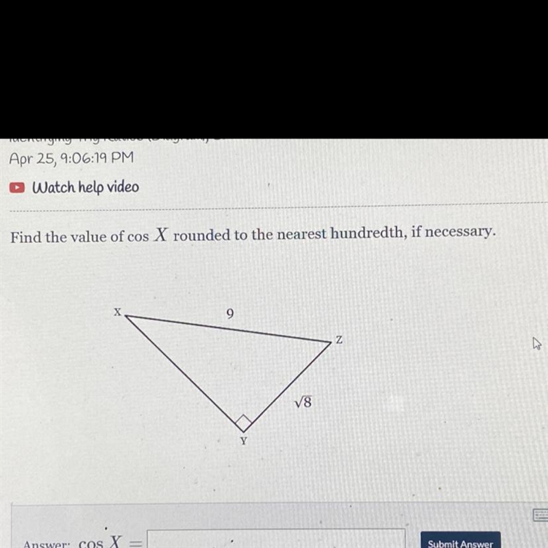 They didn't give you the adjacent angle to <X so you need to solve for it using pythagorean