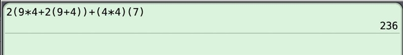 SA = 2(9·4 +2(9 +4)) +(4·4)(7) = 236 . . . . square inches