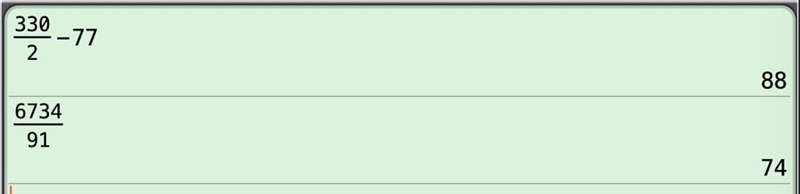 6734/91 = 74 = W