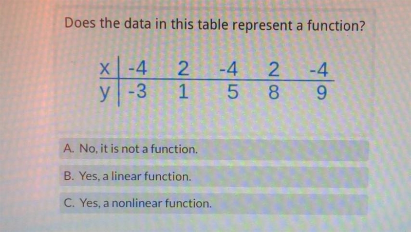 Therefore, it violates the definition of a function, and the correct answer is A. No, it is not a function.