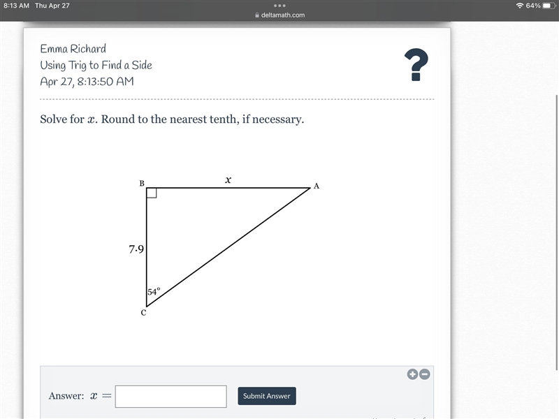 Solve for X. Round to the nearest tenth