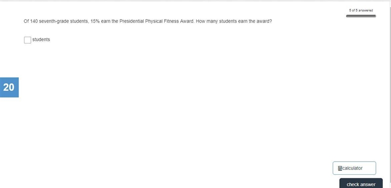 Therefore, 21 of the 140 seventh-grade students earn the Presidential Physical Fitness Award.