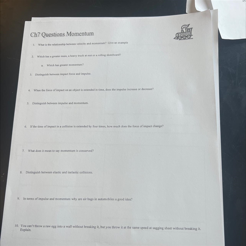 10. The sagging sheet is able to absorb the egg's impact force over a longer period of time than the wall, which causes the egg to break upon impact with the wall. The longer time of impact reduces the impulse, making it less likely for the egg to break.