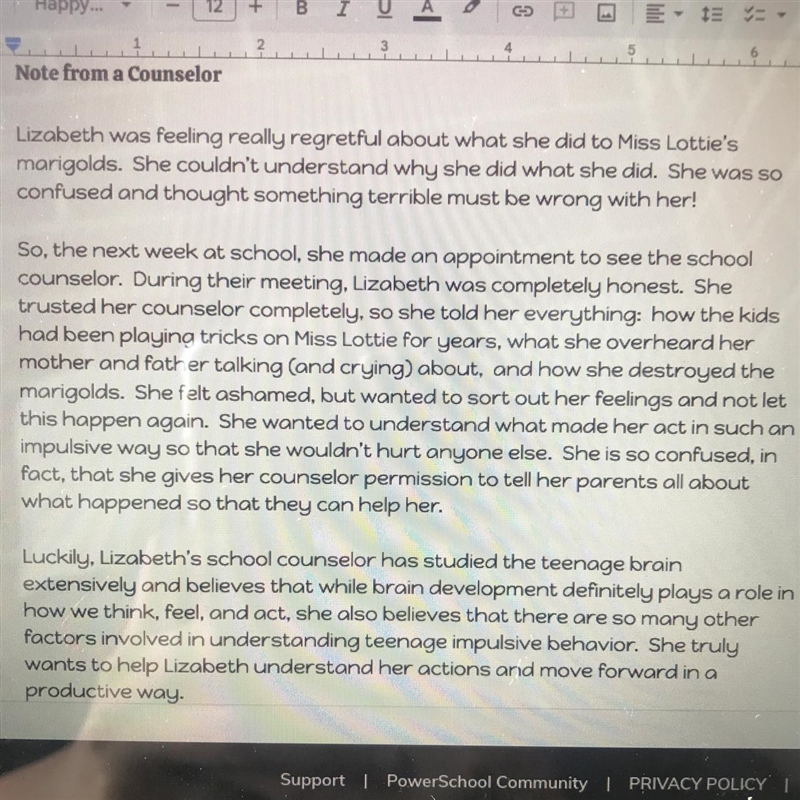 I am writing to offer my sincere condolences to you and your family following the recent events involving your daughter, Lizbeth. As Lizbeth's school counselor, I have been working closely with her over the past few months and I wanted to share my thoughts with you about what may have motivated her actions.