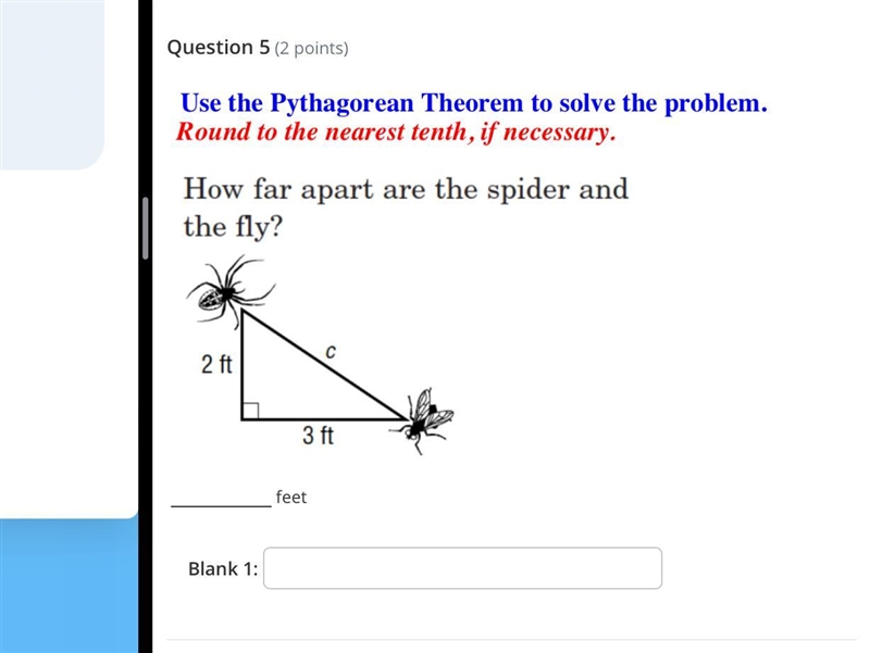In the question, sides a and b are given as 2ft and 3ft long. Plugging 2 and 3 into the equation, we will get that 2^2+3^2=c^2. 2 x 2 = 4 and 3 x 3 = 9, so 4 + 9 = c^2, or, c^2 = 13.