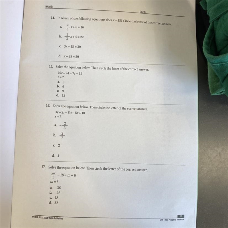 B ) ⅓ x + 4 = 22