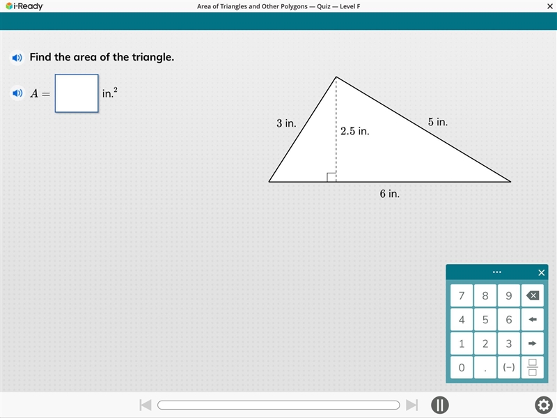 For this example, the base at the bottom "6 in" has a corresponding height of "2.5 in", so