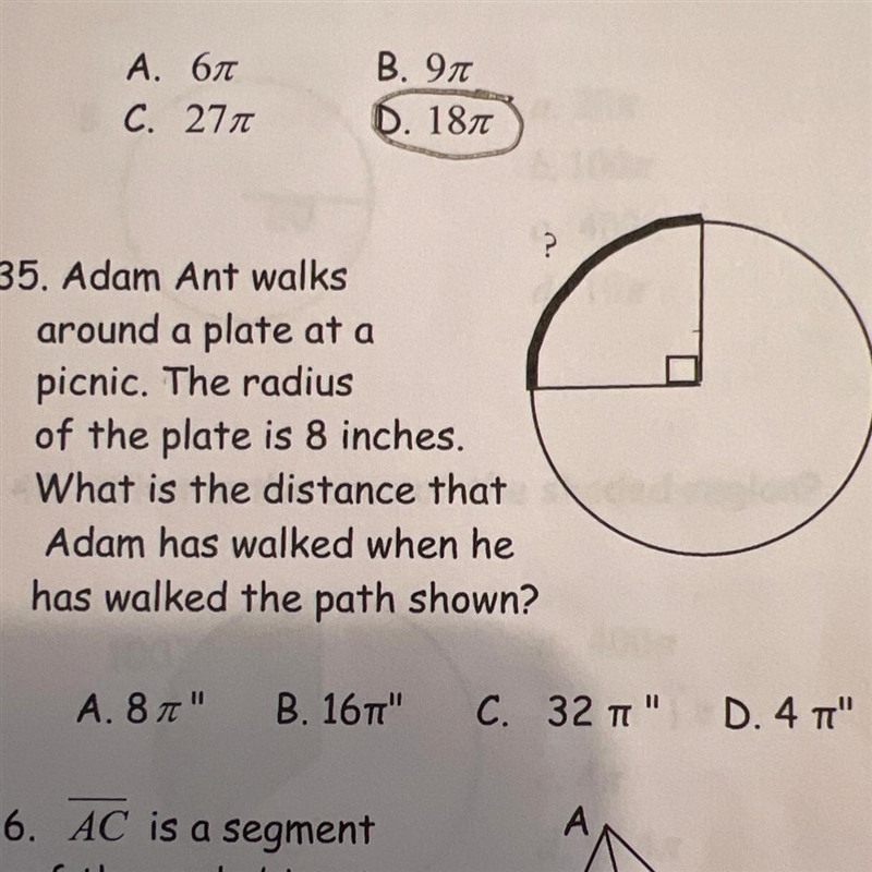 Circumference: C = 2πr = 2π(8) = 16π