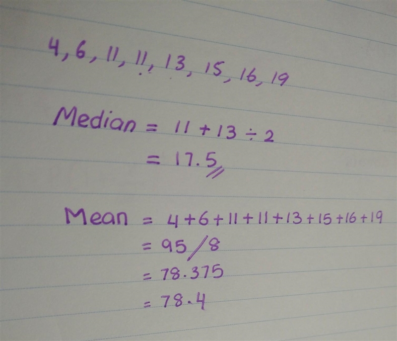 Median: As this is a set of 8, add the two numbers which are in the middle (11 and 13) and then divide them by two.