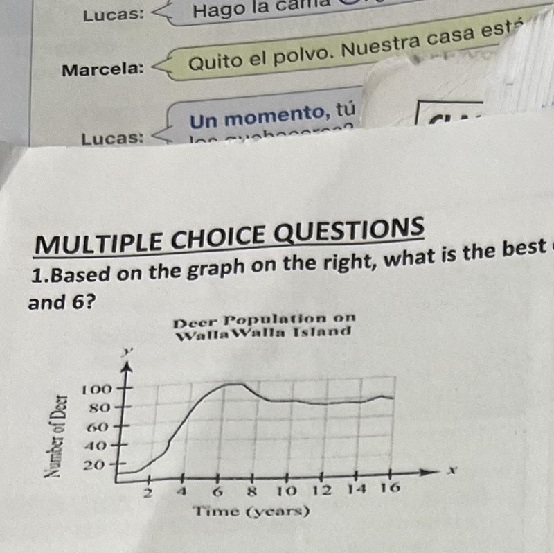 you didn't mention between year 2 and what, but since the population size increased after year 2, it means no other animals (predators) were eating the deer so all of them survive and reproduce so deer population increases almost exponentially.