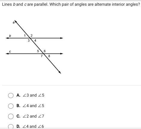Alternate interior angles lie inside the coplanar lines(in this case the lines b and c ) and they are on opposites sides of the transversal(which is line a ).