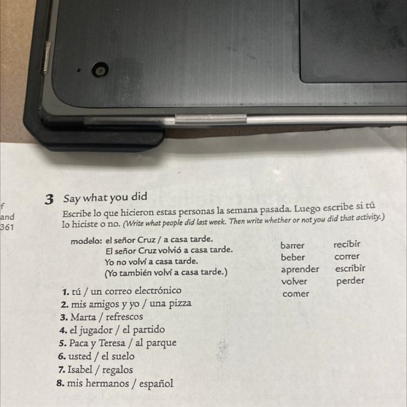 3 Say what you did Escribe lo que hicieron estas personas la semana pasada. Luego-example-1