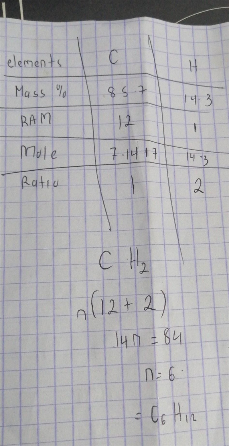 Then to the unknown number[n] Multiply it to the formula C H2 and equate it to 84..