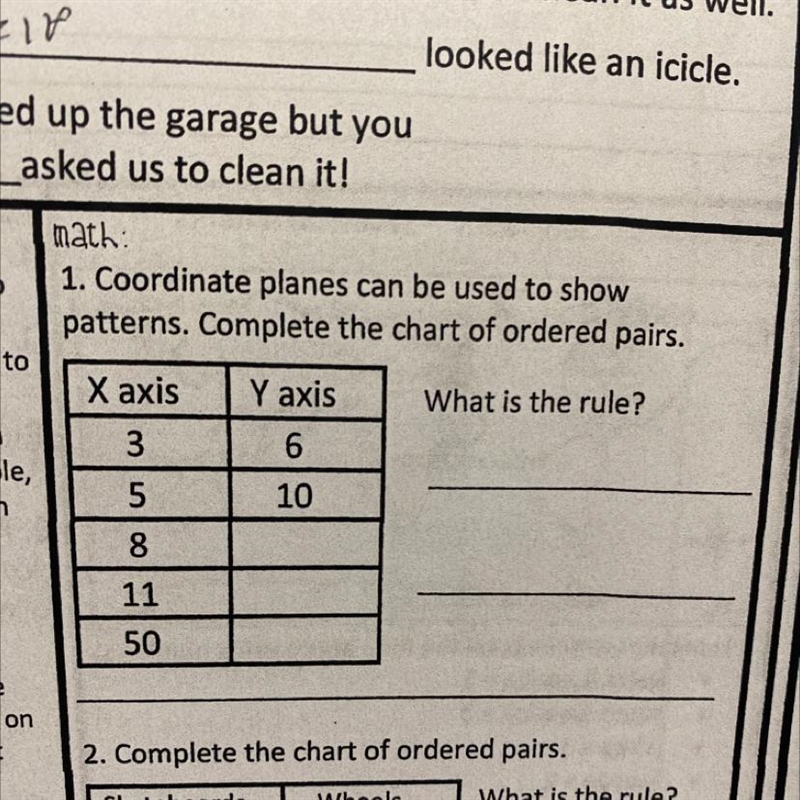 Coordinate planes can be used to show patterns. complete the chart of ordered pairsl