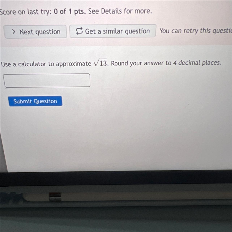 Use a calculator to approximate √13. Round your answer to 4 decimal places.