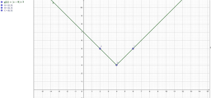 HELP PLEASE Solve by graphing g(x)=lx-4l+3