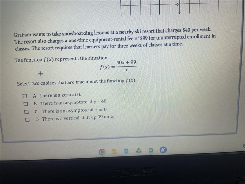 This is NOT the case for the function f(x) from the question. The "99" is part of the fraction, so it does not represent a vertical shift.