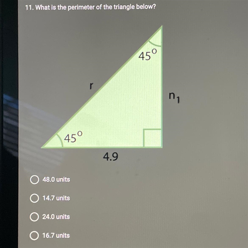 perimeter = 4.9+4.9+6.9=16.7 units