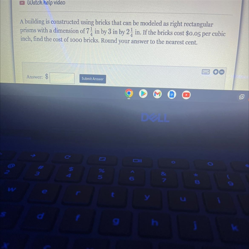 The cost of one brick is given by multiplying the volume by the cost per cubic inch: