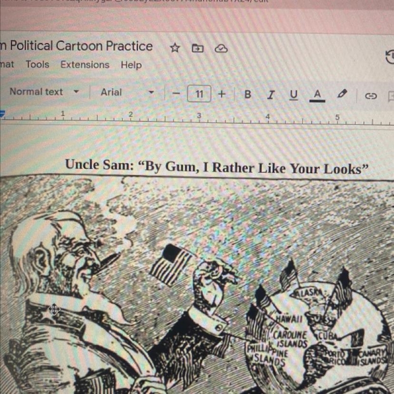 What is Uncle Sam doing in the political cartoon? What is the implied message of his actions?