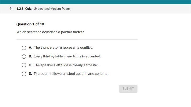 The answer is B, a meter refers to the unit in poetry for rhythm and beat.