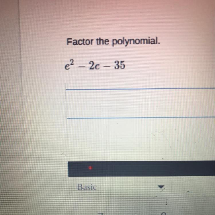 If factored form is (e + a)(e + b), then a*b will equal the constant (last term, -35) and a+b will equal the second term’s coefficient (-2). Notice that -7*5 = -35 and -7+5 = -2. Thus, -7 and 5 will be values a and b: