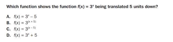 Our only choice is A and D. However, D is being translated up since it's +5. Thus, the only correct answer that a function is being translated down is: