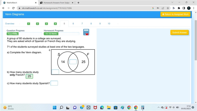 I think what you're asking is how many study Spanish. In the diagram, the spot for Spanish has the number 14.