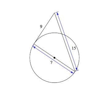 The tangent is perpendicular to the diameter, so we have a right triangle. Using Pythagorean theorem we can find the diameter: