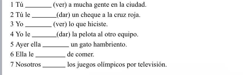 5. Ayer ella vio un gato hambriento. (poor cat :c)