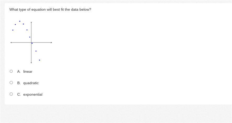 A quadratic function has a slope that changes sign, matching the slope of the curve joining the given points.