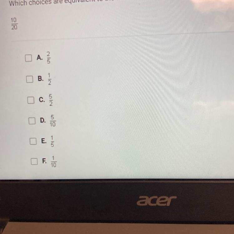 1/2, 2/4, 4/8, 8/16, 5/10, 10/20, 6/12, and 3/6.