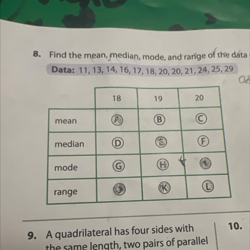 Mode - - - this is repeat/most common numbers! 20 repeats. 20 is the mode.