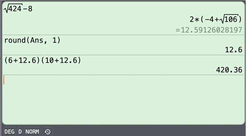 x = 12.6 . . . . . . . . subtract 8; use only the positive solution
