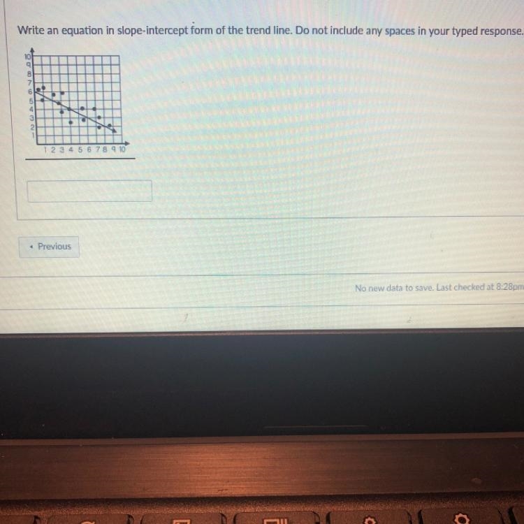 [This negative slope makes sense because this graph is decreasing - - - as x increases, y decreases.]