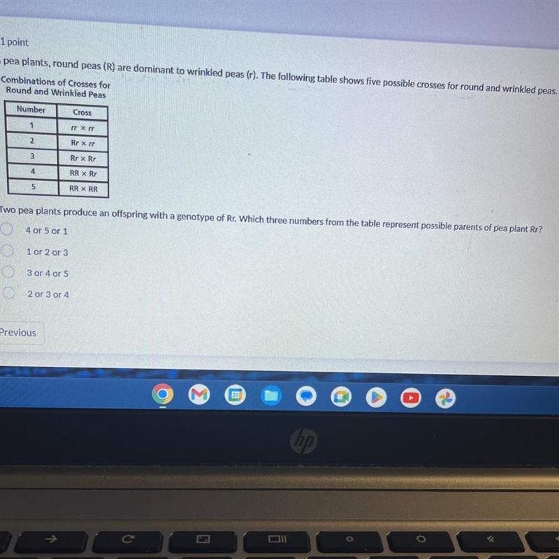 In pea plants, round peas (R) are dominant to wrinkled peas (r).